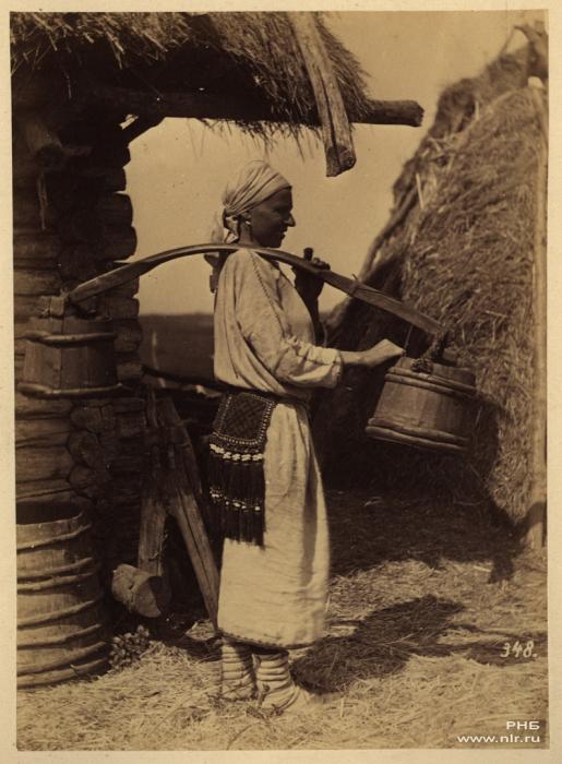 Мордовская крестьянка с коромыслом.