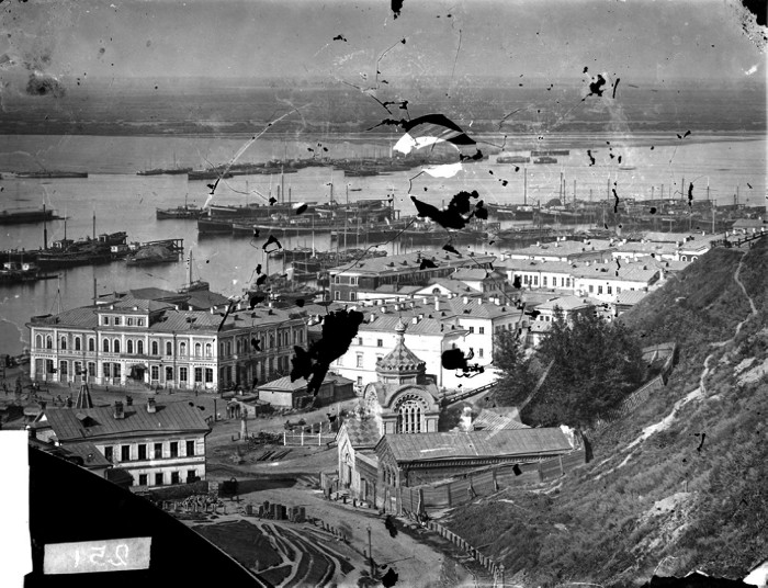 Вид на Похвалинский съезд, Нижний базар и рейд реки Волги. Нижний Новгород.