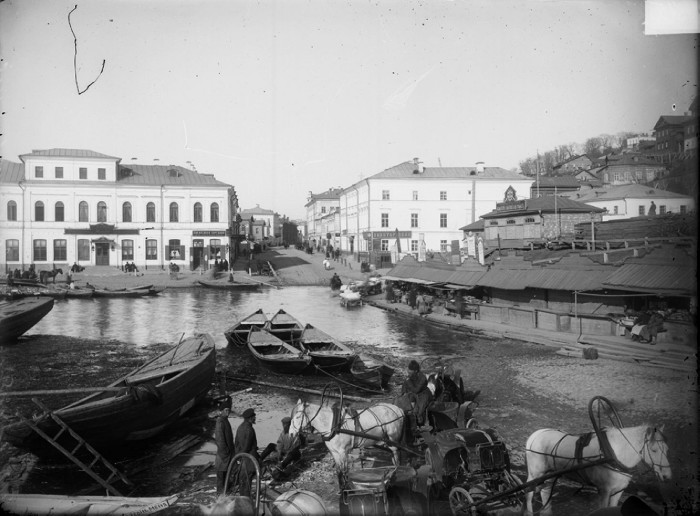 Вид на Нижний базар и Рождественскую улицу во время половодья. Нижний Новгород.