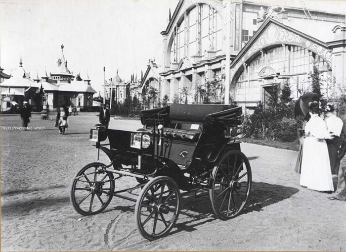 XVI Всероссийская промышленно-художественная выставка. Первый русский автомобиль Яковлева и Фрезе. Нижний Новгород.