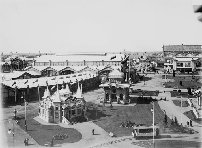 XVI Всероссийская промышленно-художественная выставка. Вид на центральный и машинный отделы. Нижний Новгород.