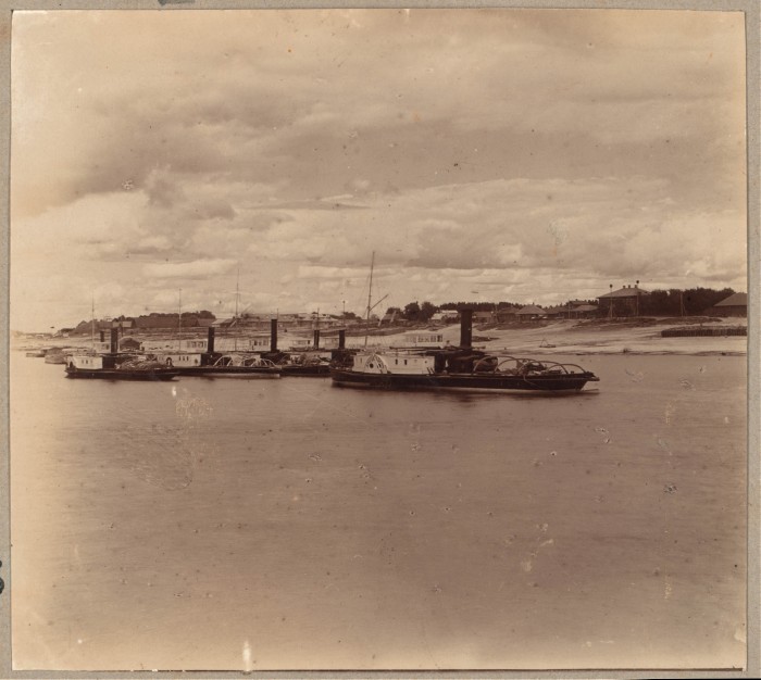 [1910]. Волга. Буксирные пароходы. [p] Фотография вошла в альбом «Российская Империя в цвете, 1909-1915, Владимирская и Ярославская губернии».