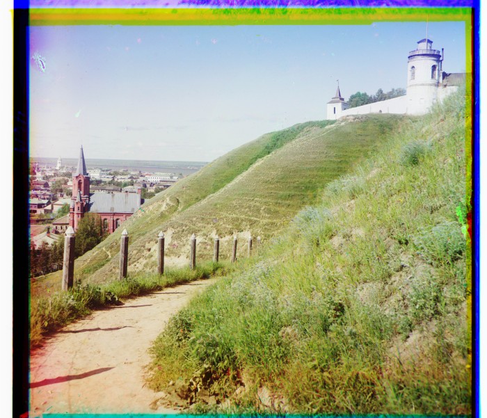 Тобольская губерния, г. Тобольск. Вал и часть ограды Софийского двора. Внизу слева костел, 2-я половина XIX в.