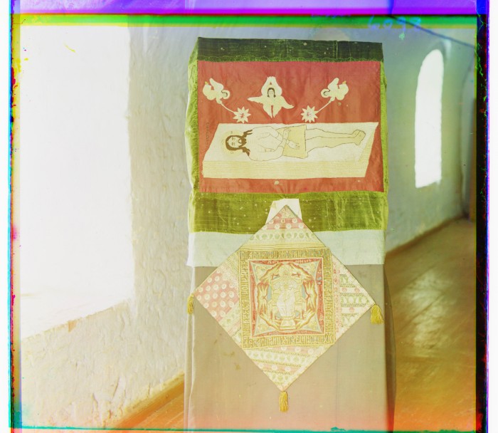 [1910]. Успенский Старицкий монастырь. Плащаница, вышитая в 1543 г. Анастасией Романовной (Юрьевой-Захарьевой, первой супругой Иоанна Грозного) и палица Патриарха Иова.