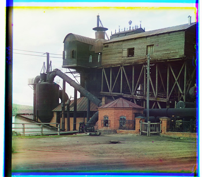 Доменные печи на Саткинском заводе. Златоустовский уезд.