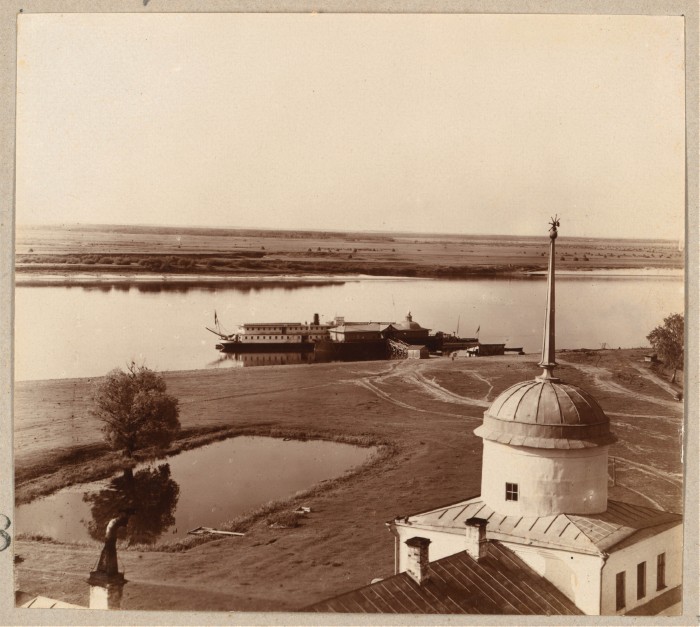 [1910]. Вид с колокольни на Волгу с пристанью.