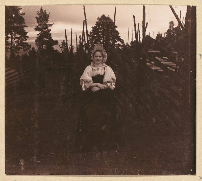 Олонецкая губерния. Старинный костюм крестьянки. Вид спереди.