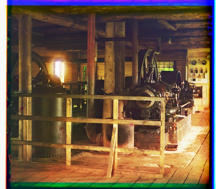 1912. Строительство плотины. Машинное отделение. [p] Фотография вошла в альбом «Российская Империя в цвете, 1909-1915, Владимирская и Ярославская губернии».