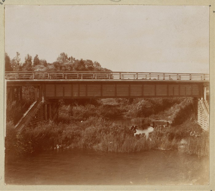 1911. Остатки свай французского моста через р. Колочь у деревни Горки.