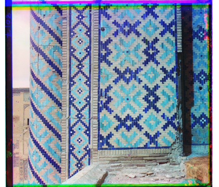Самаркандская область. Самарканд. Стена и колонка наверху Шир-Дора.