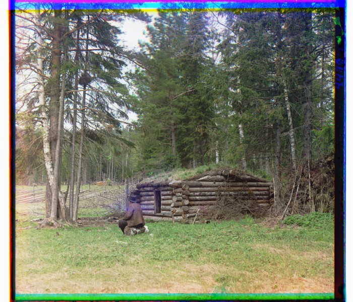 Курная избушка в лесу для дровосеков и курья (выжигания угля). Река Чусовая. Пермская губерния. Местоположение предположительно