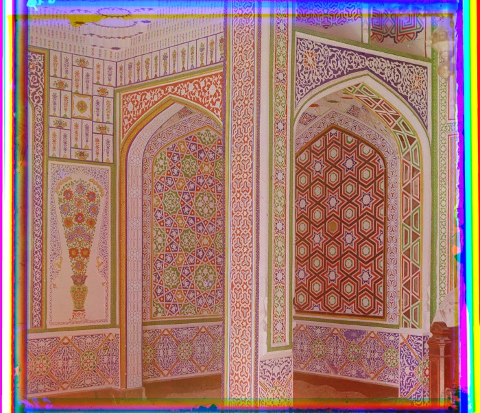 Самаркандская область. В окрестностях Самарканда. Образец мозаичных стен внутри дома богатого сарта.