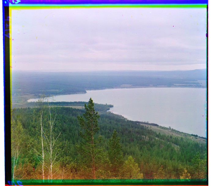 Вид с горы на Ильменское озеро около ст. Миасс. Челябинский уезд Оренбургской губернии