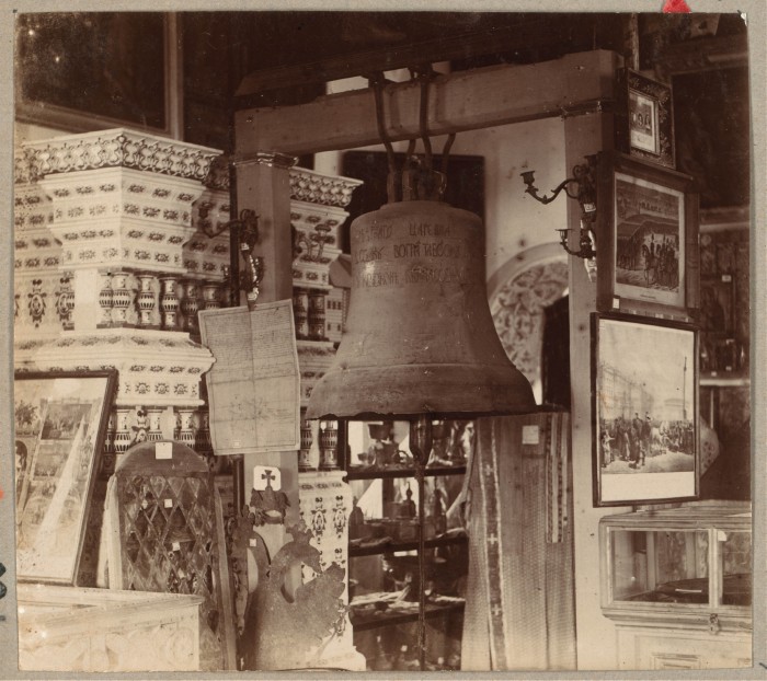 [1910]. "Ссыльный колокол", сосланный в Тобольск (Сибирь) царем Иваном Грозным за призыв угличан к бунту; на нем вычеканена надпись: "Сей колокол, в который били в набат при убиении благоверного царевича Димитрия, 1593 году прислан из г. Углича в Сибирь в ссылку во град Тобольск к церкви всемилостивого Спаса, что на торгу, а потом на софийской колокольне был часобитной, весу в нем 19 пудов 20 фунтов.