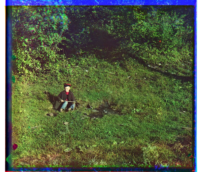 На реке Сим. Пастушок у кострища. Уфимский уезд.
