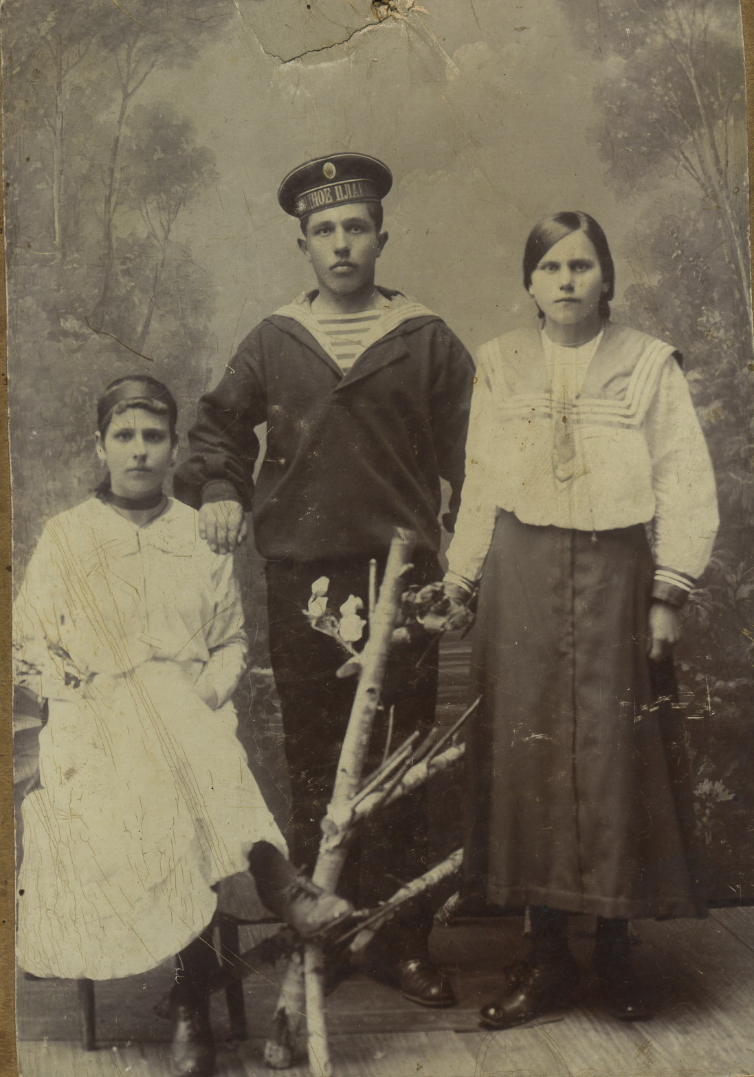 Неизвестный фотограф. Портрет матроса с двумя девушками. Справа – Елизавета Сергеевна Деева. Муром, 1919. Архив Деевых.