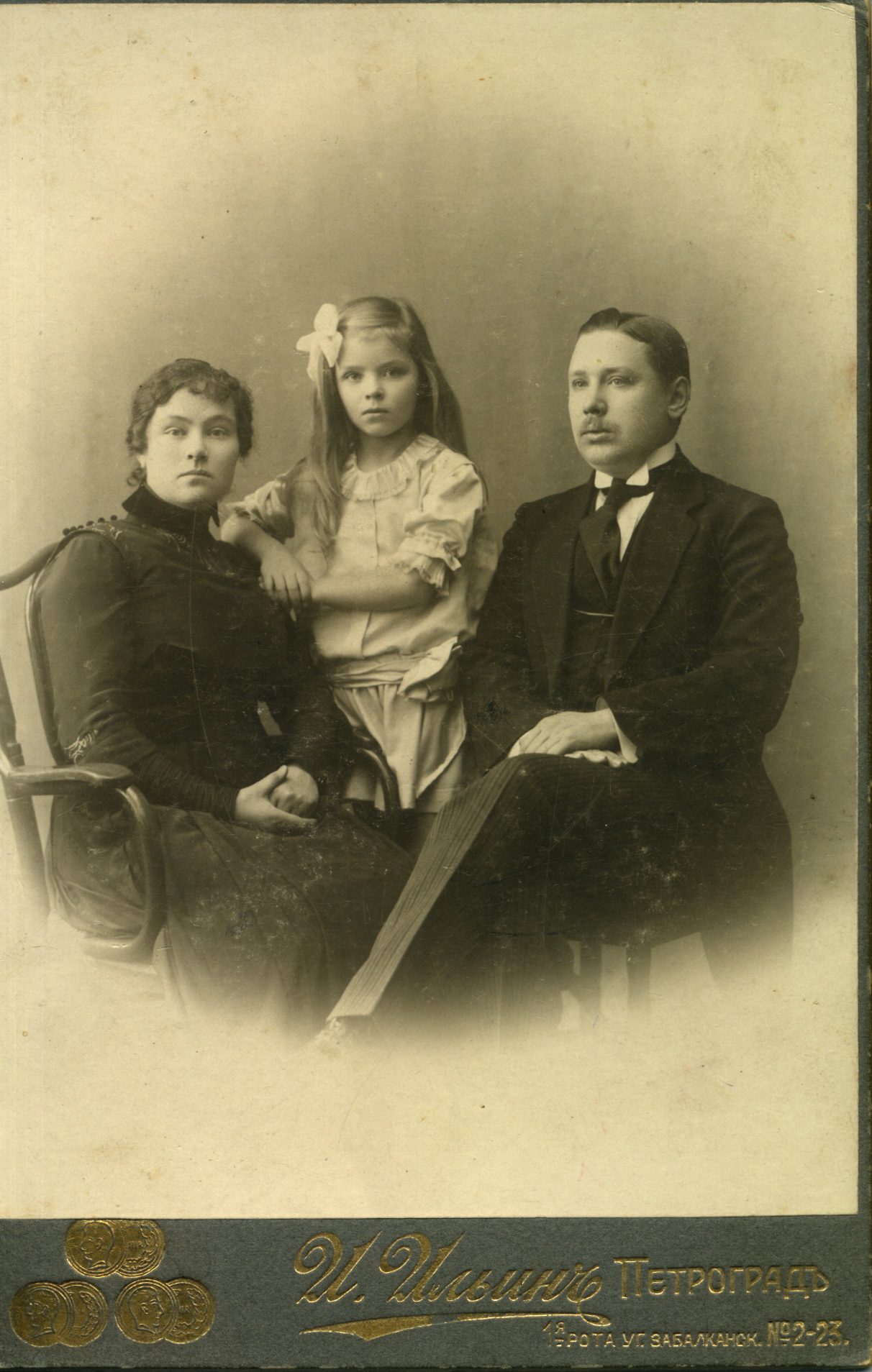 Фотоателье И. Ильина, Петроград. Алексей Щелоков с женой Екатериной Петровной (Нехорошевой) и дочерью Анной. 16 февраля 1917.