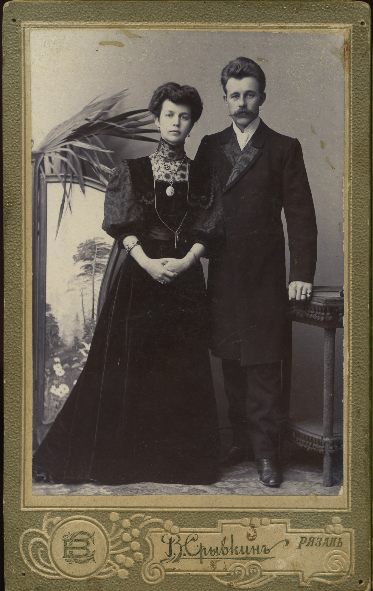 Фотоателье В. Срывкина. Портрет супружеской пары . На обороте подпись: «На добрую память Витовцеву от Богачевых». Рязань, март 1903.