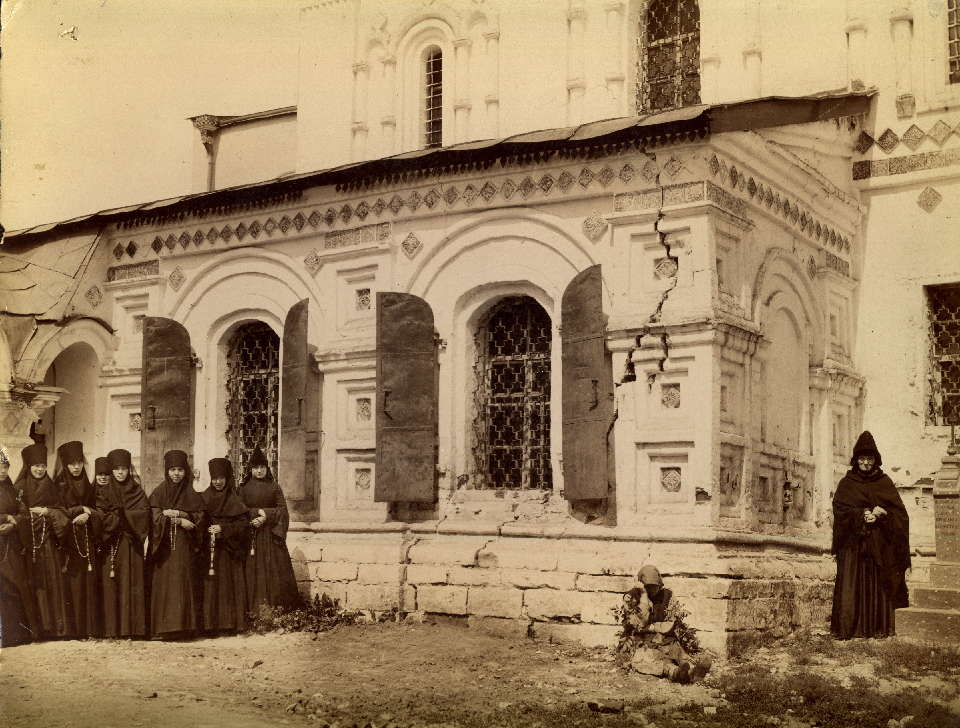 Монахини у стен Троицкого собора. Муром, 1900-е гг. 22,9 х 29