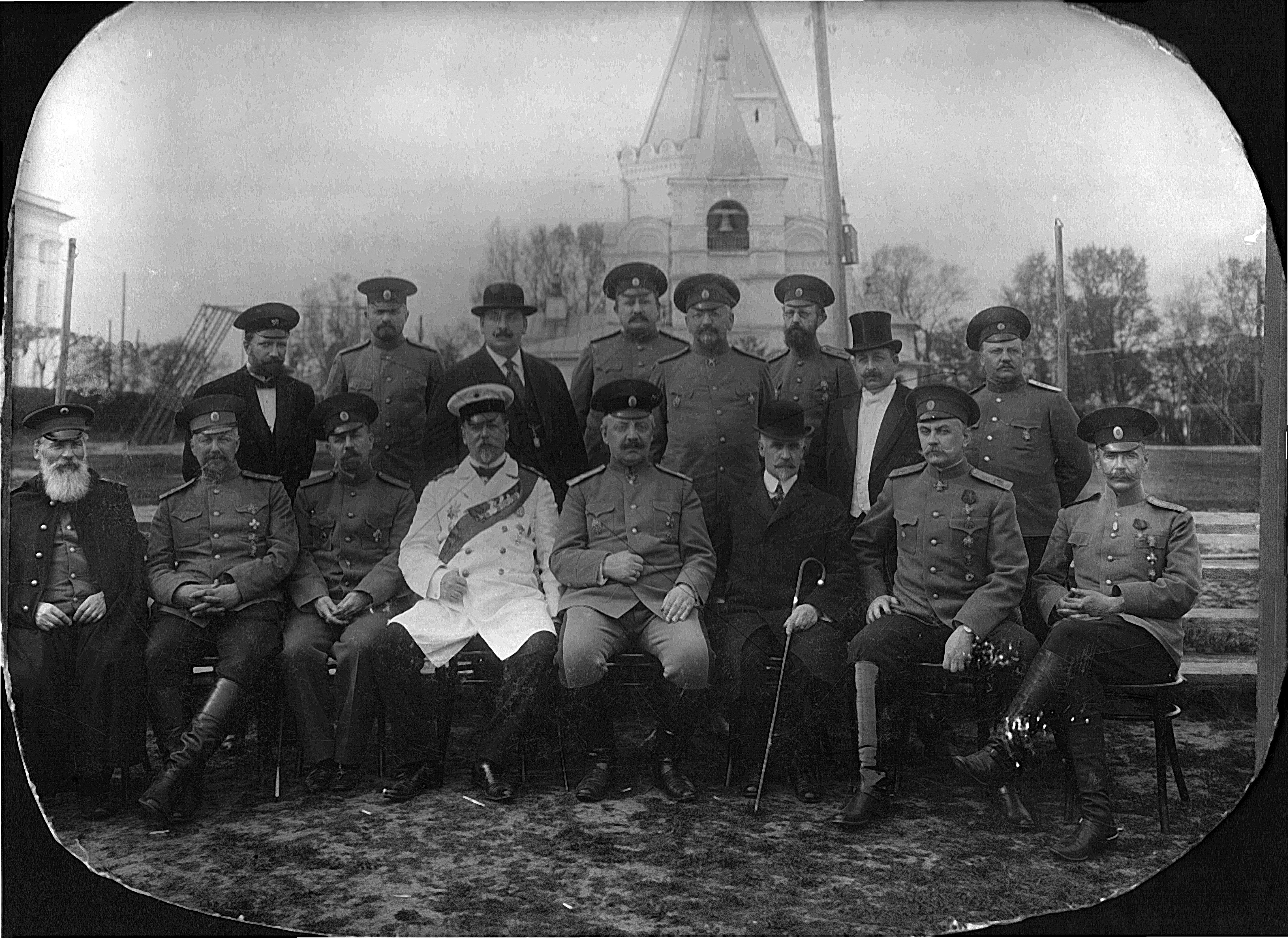 Групповой портрет военных и гражданских лиц на фоне церкви. Муром (?).