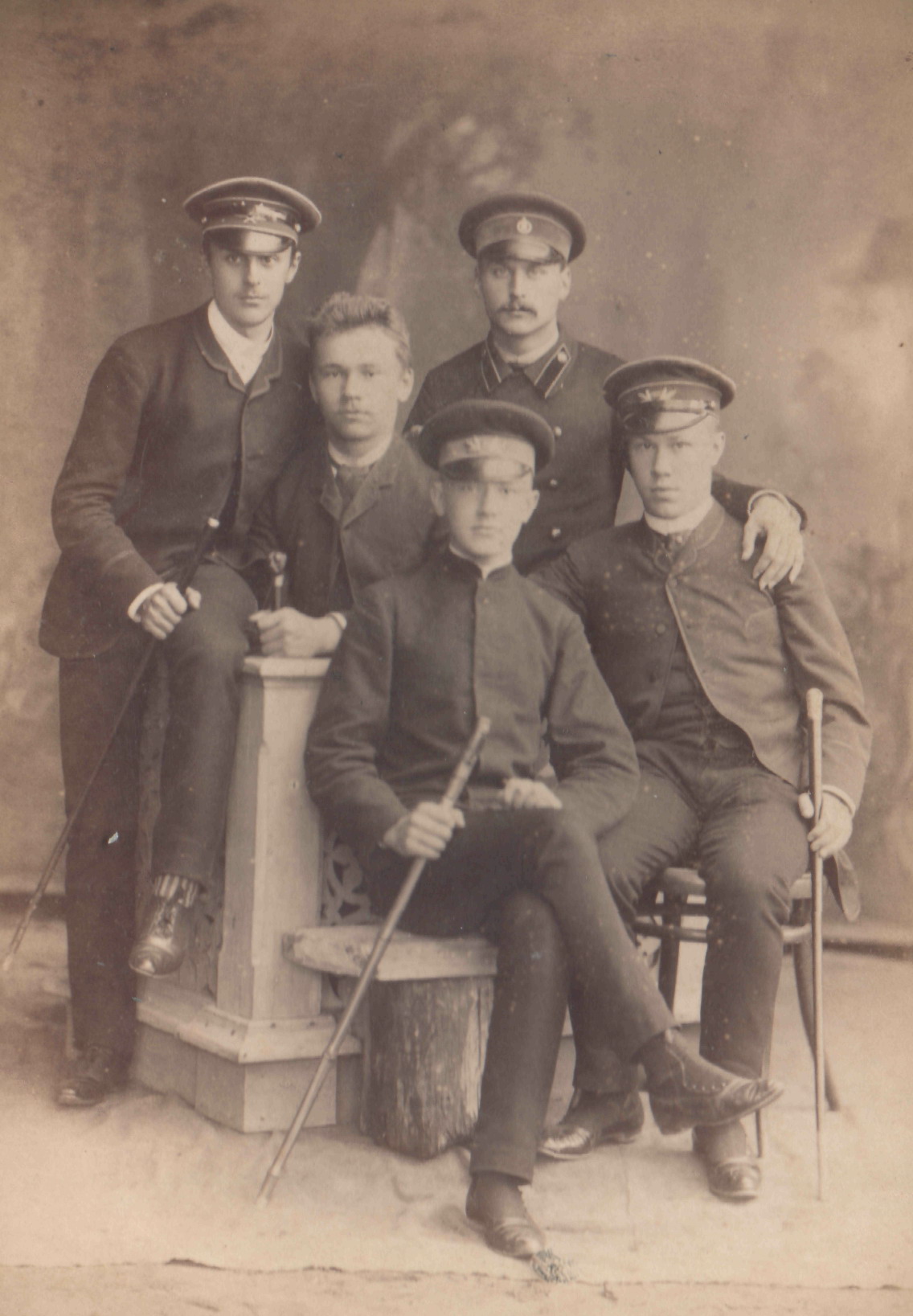 Фотограф Кудрявцев. Портрет молодых людей с тросточками. 1900-е гг.