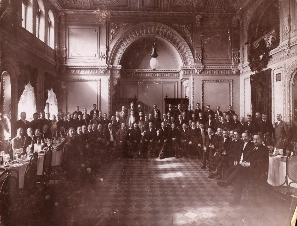 Группа представителей в зале дворянского собрания. Дата: к. XIX в. Место съемки: г. Н.Новгород Автор: М.П. Дмитриев
