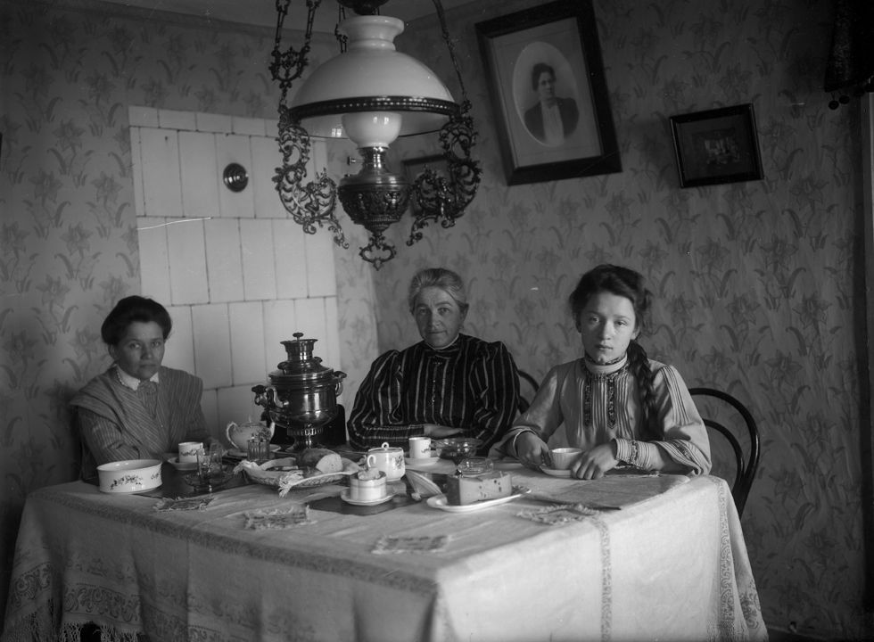 Три женщины за обеденным столом. Слева - Л.Д. Зевеке. Автор: В.А. Зевеке Место события: г. Н.Новгород Дата: нач. ХХ в.