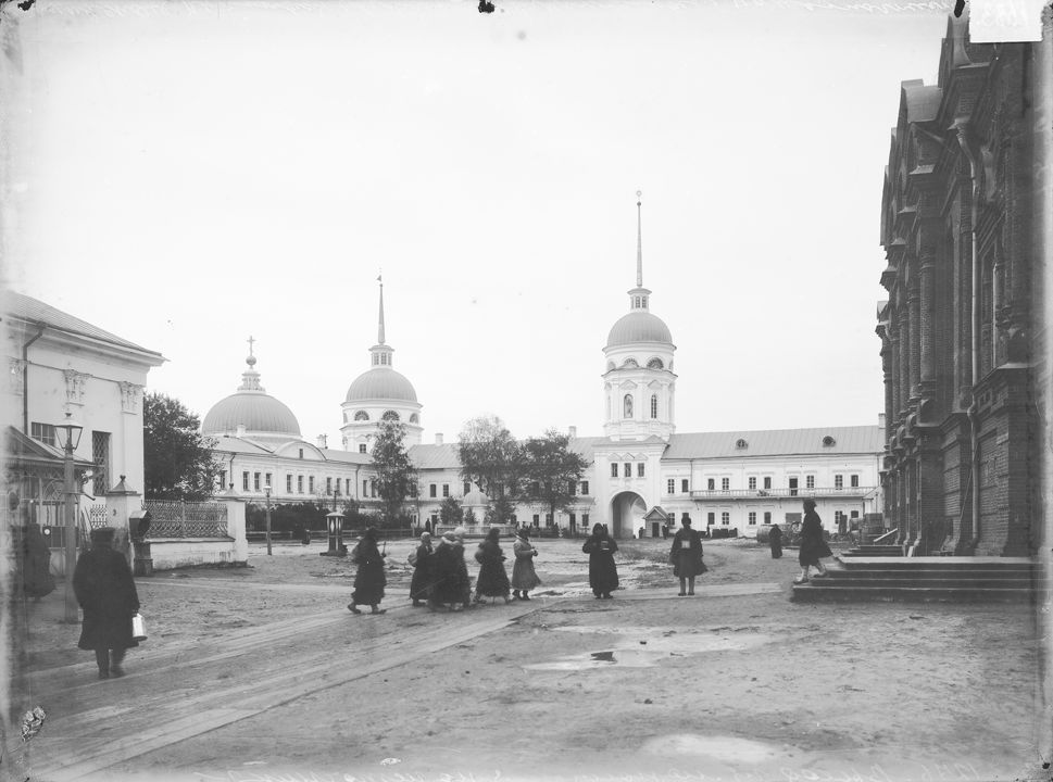 Саровский мужской монастырь. Внутренний вид площади. Выход из монастыря в восточные ворота. Автор: М.П. Дмитриев Место события: г. Саров, Тамбовская губерния Дата: н. ХХ вв.
