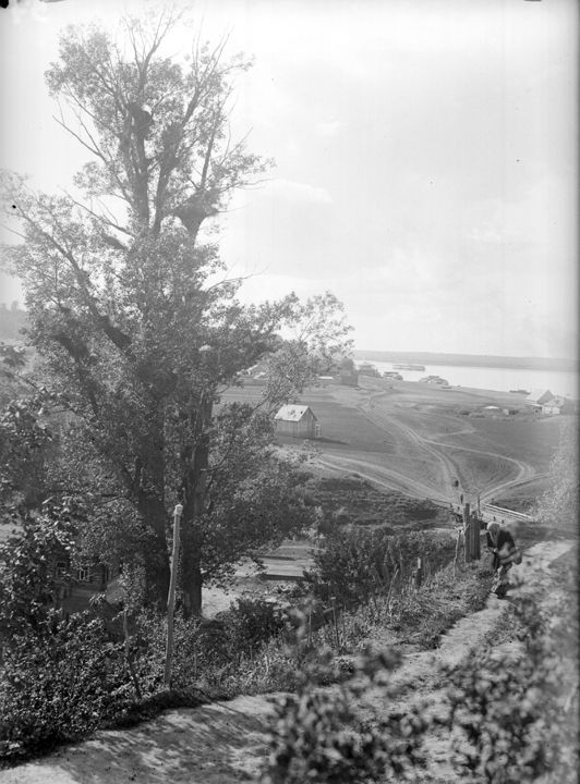 Вид на село Работки с горы. На дальнем плане река. Автор: В.А. Зевеке Место события: с. Работки Кстовского р-на Нижегородской области Дата: 1916 г.