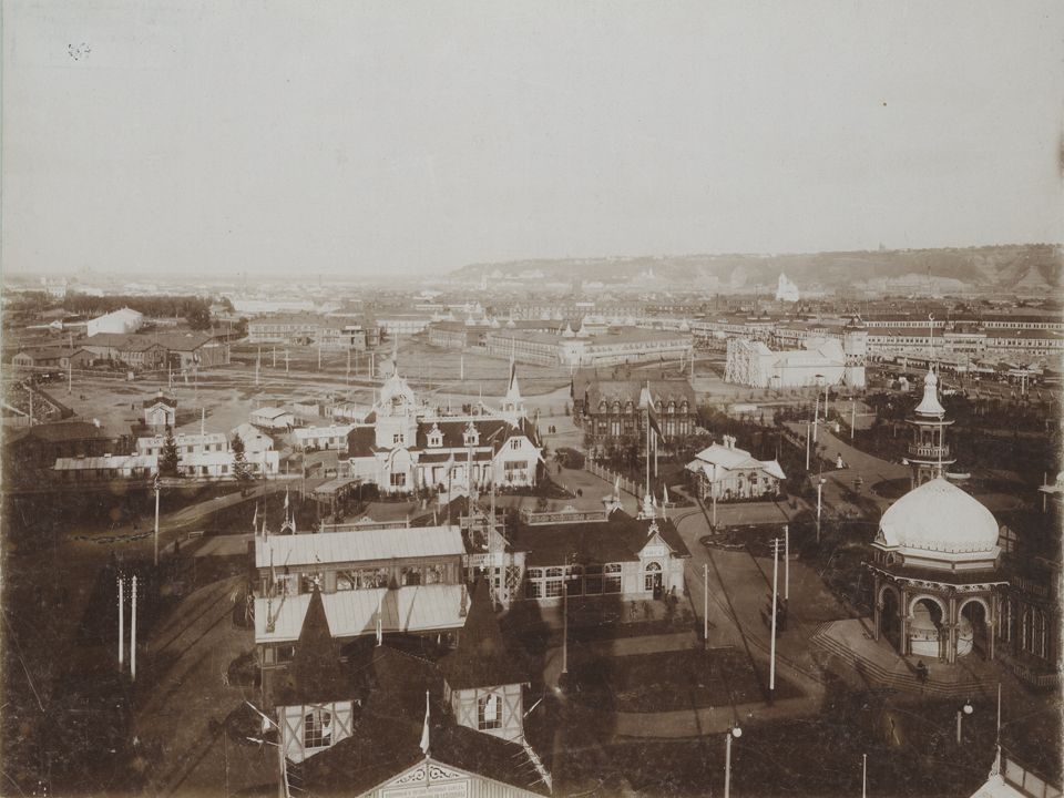 Всероссийская промышленная и художественная выставка 1896 года. Общий вид выставки. Дата: 1896 г.Место съемки: г. Н.Новгород Автор: М.П. Дмитриев