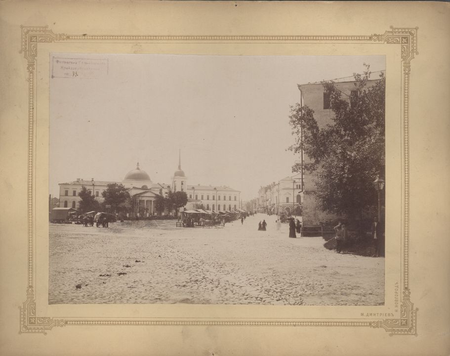 Общий вид Благовещенской площади и старого городского театра со стороны Дмитриевской башни.Дата: к. XIX в.Место съемки: г. Н.Новгород Автор: М.П. Дмитриев