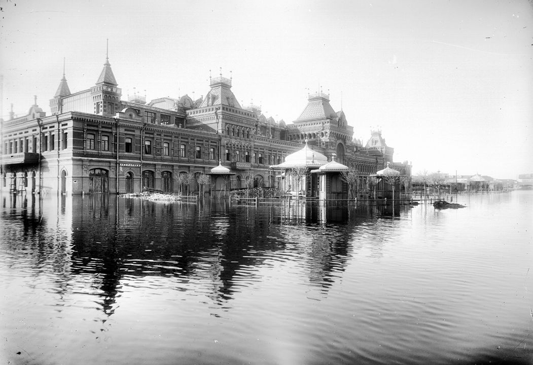Вид на главный дом нижегородской Ярмарки во время половодья. Дата: 30 апреля 1899 г. Нижний Новгород.