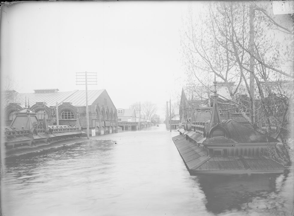 Нижегородская ярмарка во время половодья. Вид на Театральную площадь. Нижний Новгород.