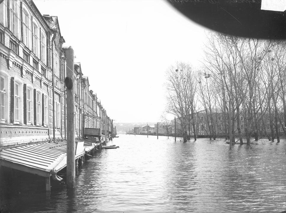 Нижегородская ярмарка во время половодья. Вид на Театральную площадь. Нижний Новгород.