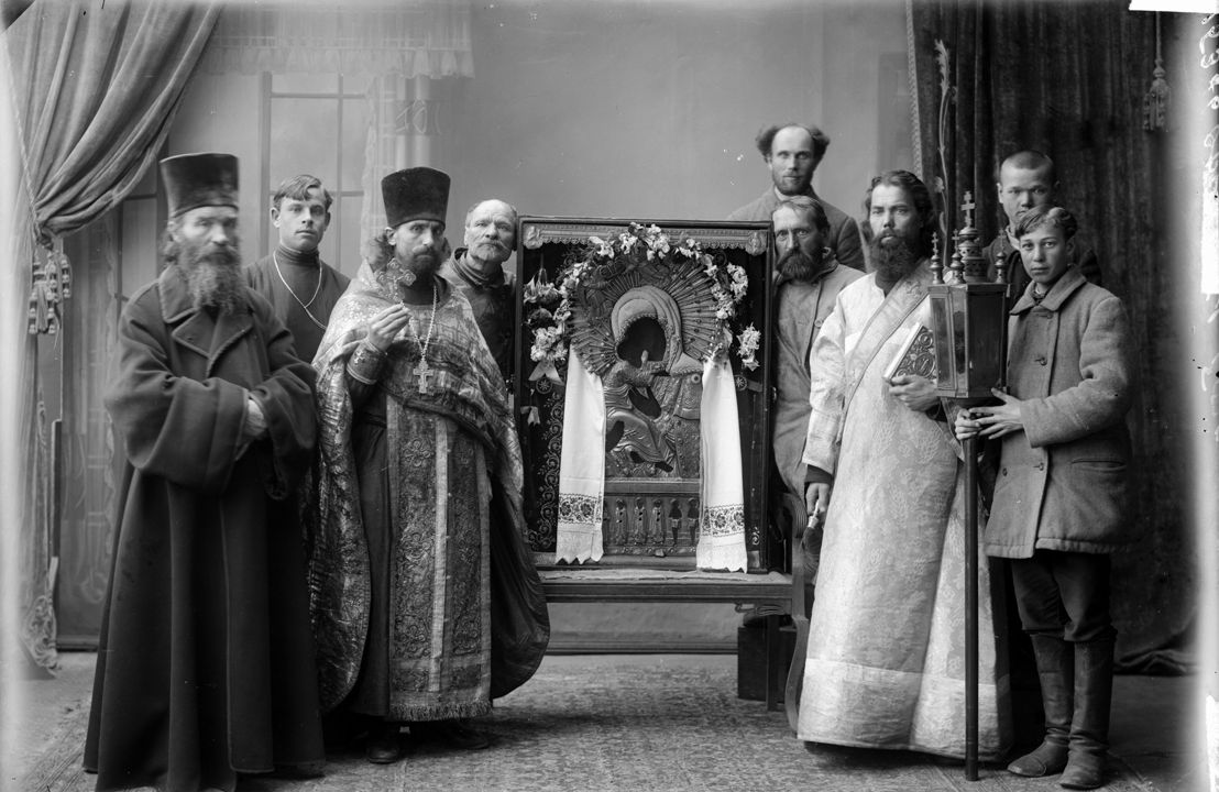 Группа священнослужителей с Оранской иконой Божией Матери.Дата: 1915 г. Автор: М.П. Дмитриев Место съемки: г. Н.Новгород