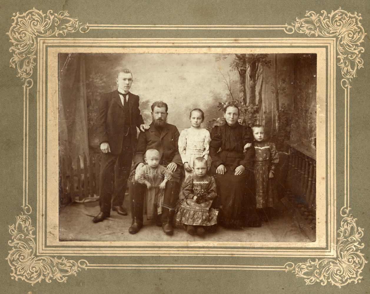 Фотограф неизвестен. Село Павлово, Горбатовский уезд. Портрет семьи кустаря-замочника И. Березина. 1905 г.