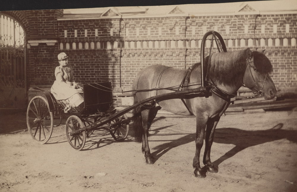 Фотограф неизвестен, с. Павлово Горбатовский уезд. Купеческая жена Елизавета Лавровна Гомулина в экипаже во дворе собственной усадьбы. 1890-е гг.