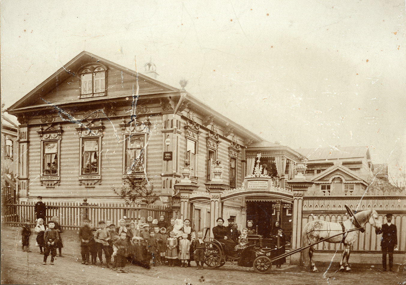 Фотограф неизвестен. Село Павлово Горбатовский уезд. Дом Василия Устиновича Пестрякова на углу улиц Дубровской и Покровской (ныне улиц Кирова и Профсоюзной), вид с улицы Дубровской, 1908 г.