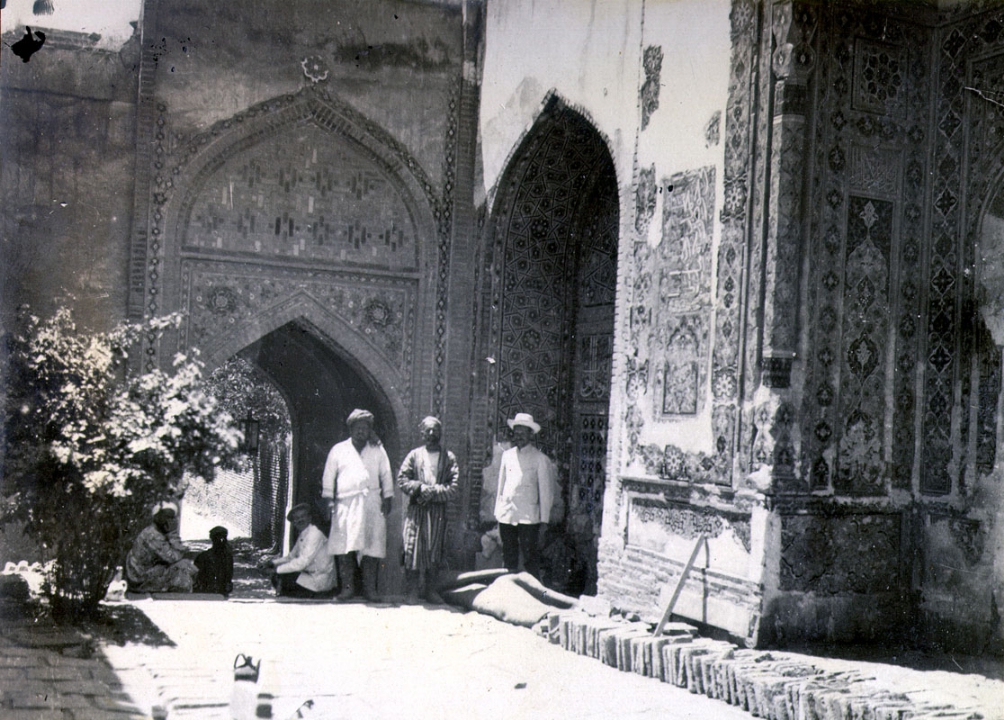 Наталия Павловна Дурдина с матерью и неизвестными женщинами у лестницы перед домом