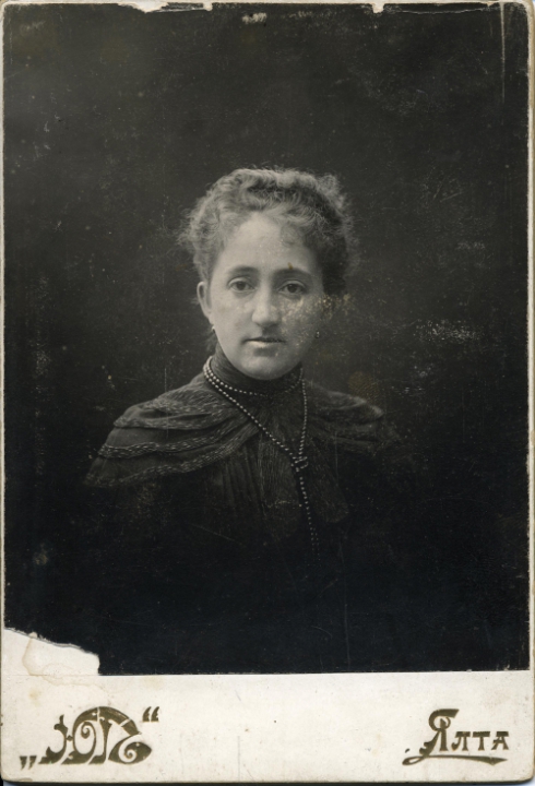 Наталия Павловна Дурдина с матерью и неизвестными женщинами у лестницы перед домом
