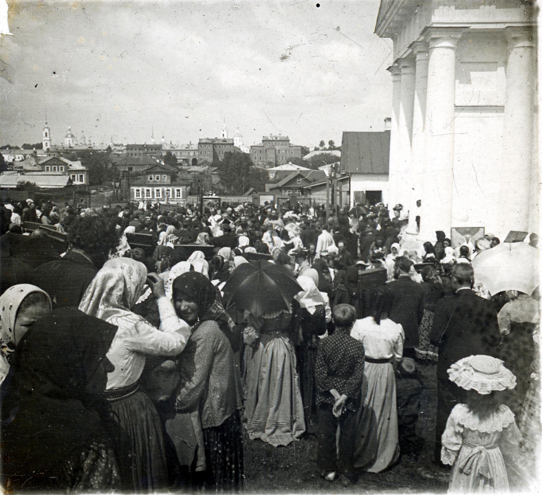 Большая группа людей у храма