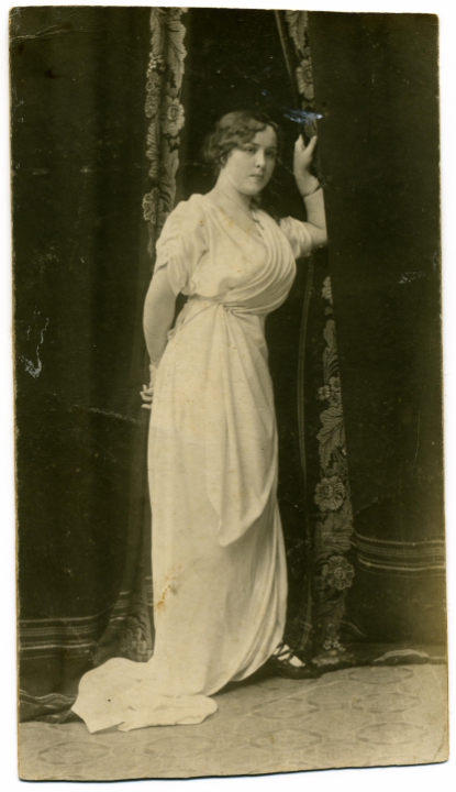 Молодая женщина в белом длинном платье