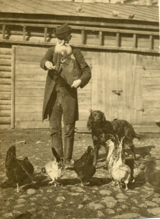 Наталия Павловна Дурдина с матерью и неизвестными женщинами у лестницы перед домом