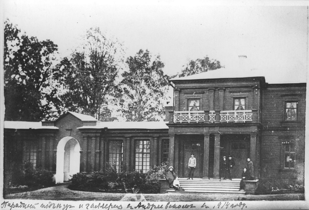 Наталия Павловна Дурдина с матерью и неизвестными женщинами у лестницы перед домом