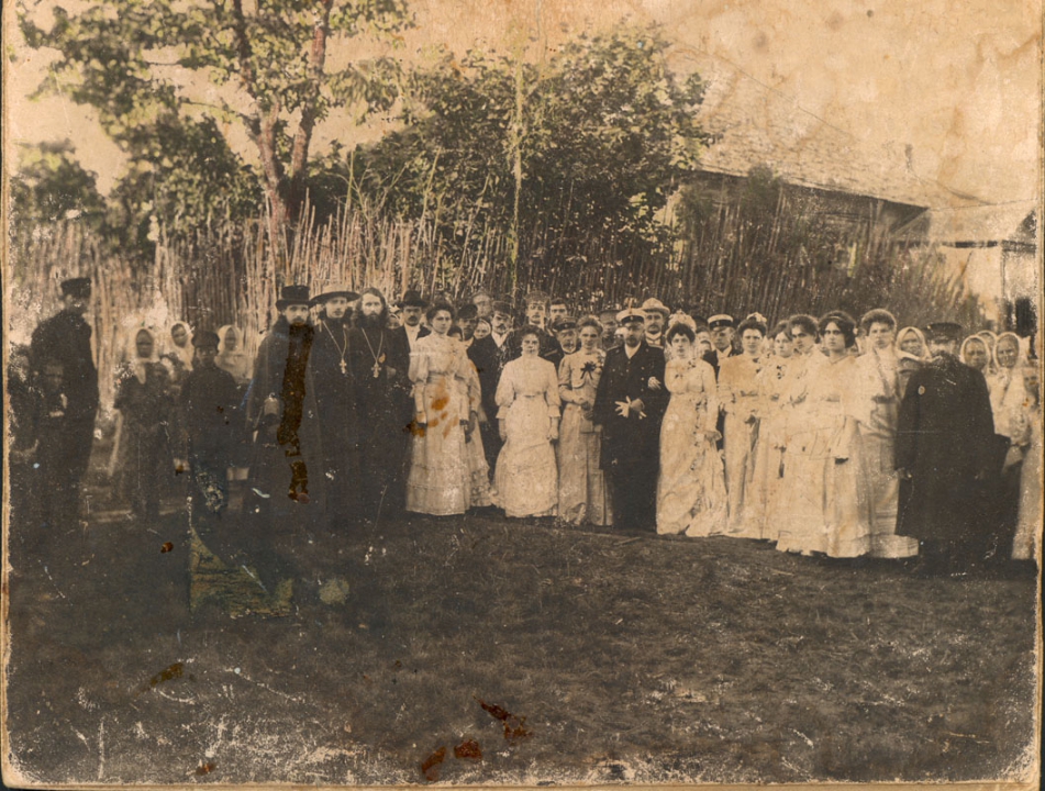 Наталия Павловна Дурдина с матерью и неизвестными женщинами у лестницы перед домом