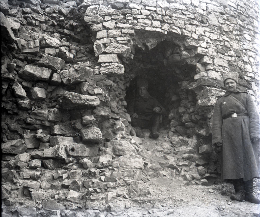 Военные у кирпичной стены