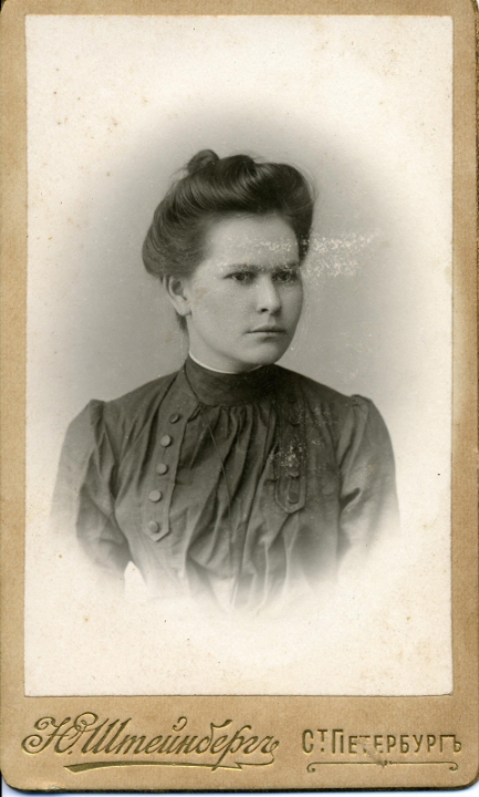Наталия Павловна Дурдина с матерью и неизвестными женщинами у лестницы перед домом