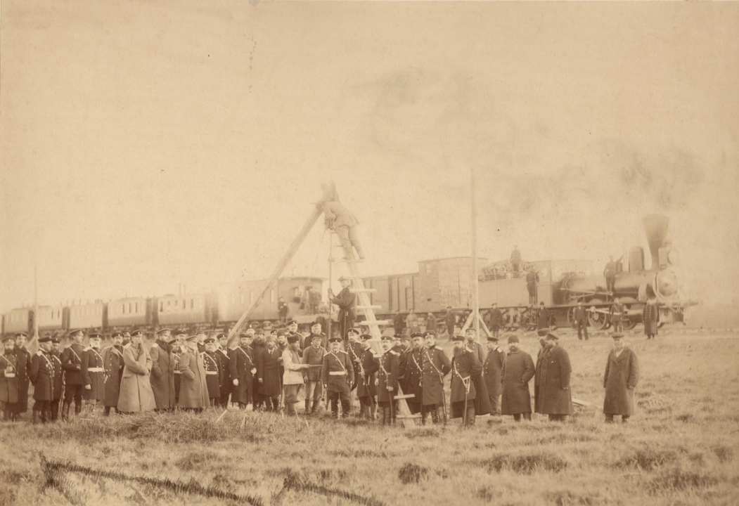 Пробное бурение на Жабино-Пинской железной дороге в присутствии военного министра