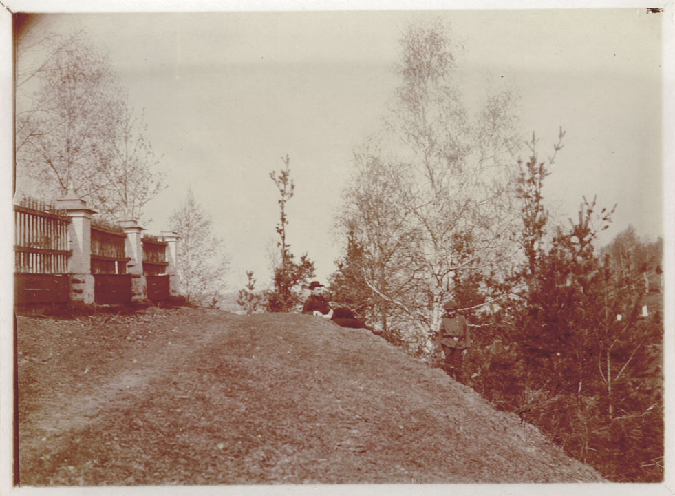 Наталия Павловна Дурдина с матерью и неизвестными женщинами у лестницы перед домом
