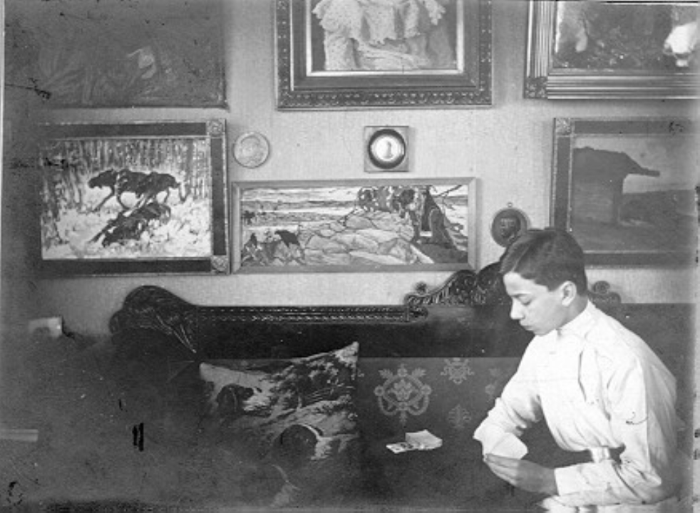 Портрет В.Е.Опочинина подростком за игрой в карты в гостиной в Максимовском